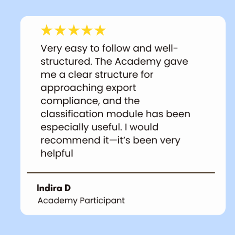That’s exactly why Export Compliance Academy was created — to give you clarity, structure, and confidence in your decisions.